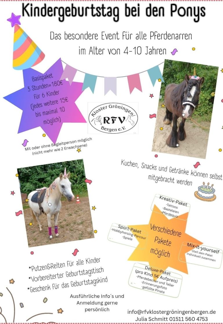 Der besondere Geburtstag auf dem Reitplatz.Es sind verschiedene Pakete möglich.Sprechen Sie uns einfach an.