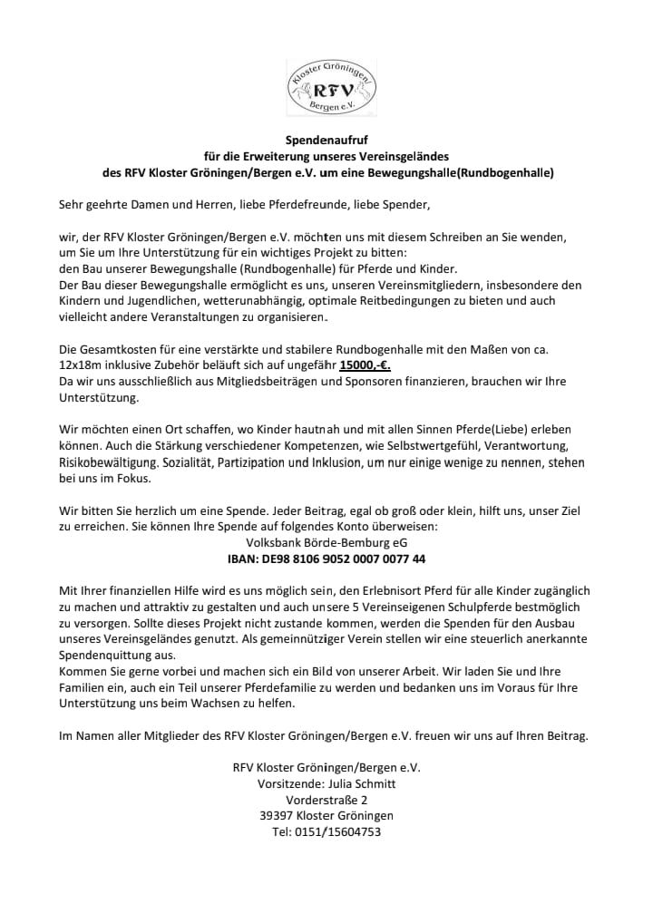 Wir möchten allen unseren bisherigen Sponsoren und Spendern von ganzem Herzen für die Unterstützung unseres Reitvereins danken.